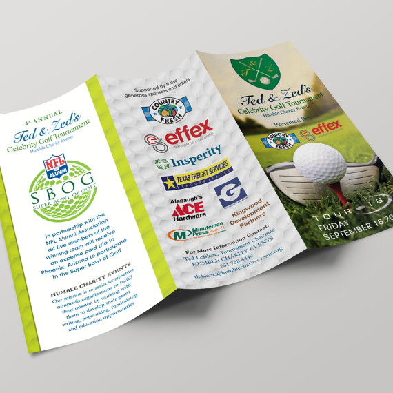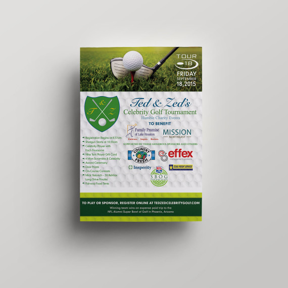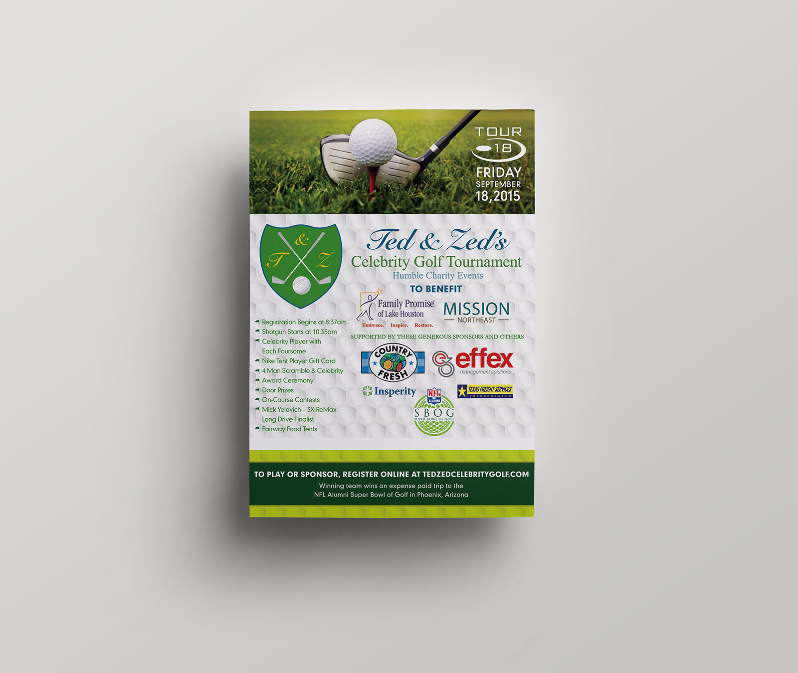 Ted & Zed’s Celebrity Golf Tournament is an annual event organized by Humble Charity Events. The tournament is held during the fall each year. They work with local Houston charities and the money raised benefits these charities. It is a one-day golf tournament that brings players from all over Houston along with local celebrities that play for a good cause. In 2015, they partnered with the NFL Alumni Association. Effex Management Solutions, Country Fresh, Minuteman Press, Getting Results, Insperity are other sponsors that have participated in this tournament. The three charities that benefit from the 2016 tournament were The First Tee of Greater Houston, Family Promise of Lake Houston, and Child Builders.