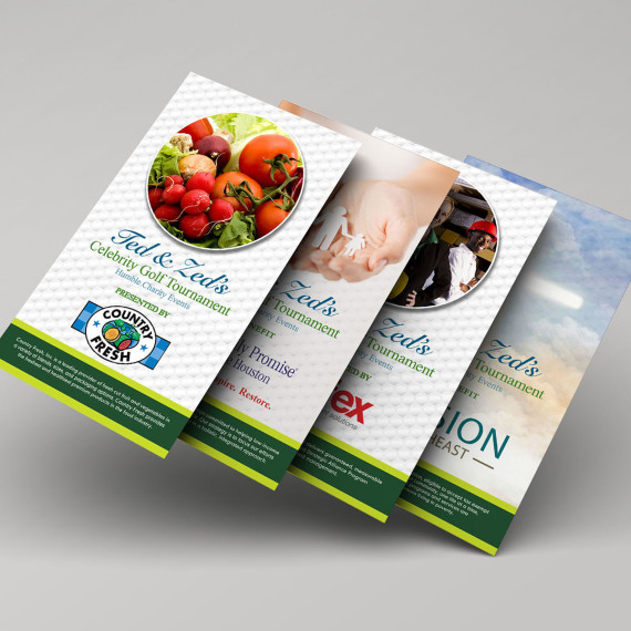 We have had a long-established relationship with them and love working for their event every year. One of the main goals was to display the necessary information in a clean and composed manner. We gave them a complete new look by highlighting golf as their focal point. The approach taken for this event was a combination of graphic and type. One of the unique pieces designed for the tournament were hole signs for each hole at the course. Each sign was an 8ft x 3ft wide four sided pyramid that displayed the sponsor’s logo as well as the tournament’s logo. Other pieces designed include trifold brochures, flyers, food tent signs, tabletop signs, and t-shirt designs. We also designed their social media campaign that included posts about the tournament venue, prizes, celebrities, press release, etc.